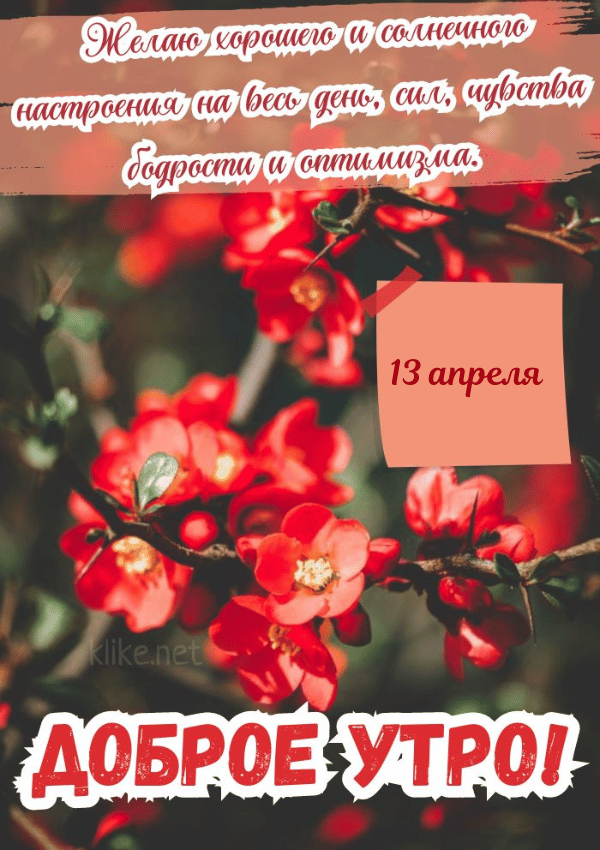Особенная подборка — картинки и открытки доброе утро 13 апреля! Все живое вокруг словно просыпается, расправляя крылья навстречу будущему. Пусть сегодняшний день будет ярким, насыщенным и принесёт вам только добрые впечатления.
