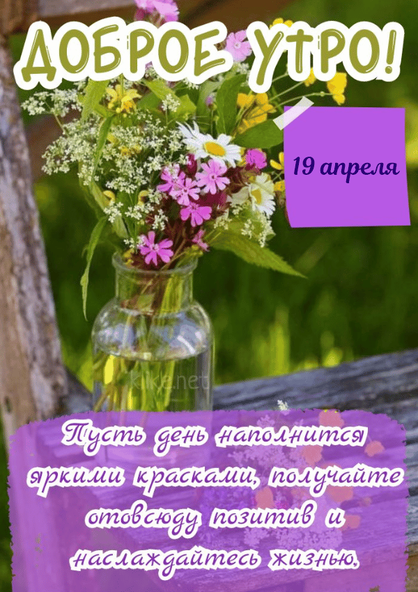 Трогательная подборка — открытки и картинки доброе утро 19 апреля! Солнце всё чаще радует глаз, а мир вокруг выглядит ярче и добрее. Пусть день подарит массу позитивных моментов, которые зарядят вас на всё лучшее, что впереди.