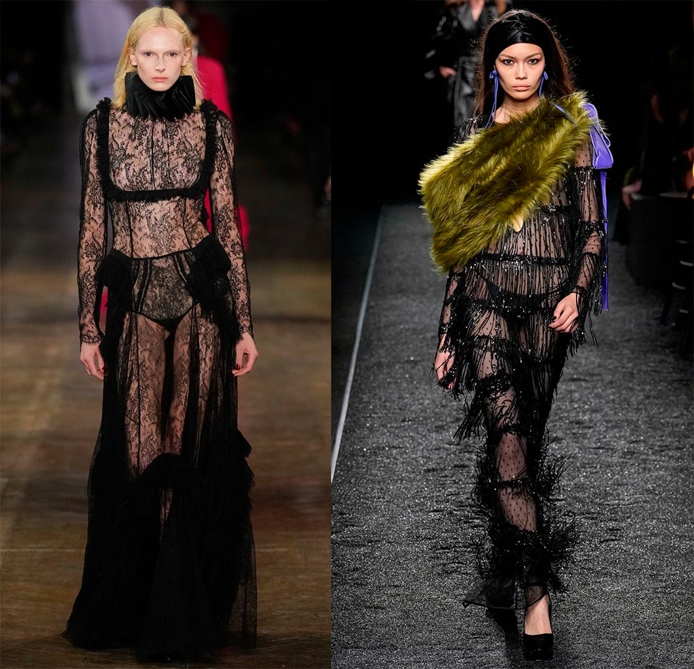Самое трендовое сочетание 2025-2026 – черная прозрачная одежда и черное белье, которое является важной частью образа.