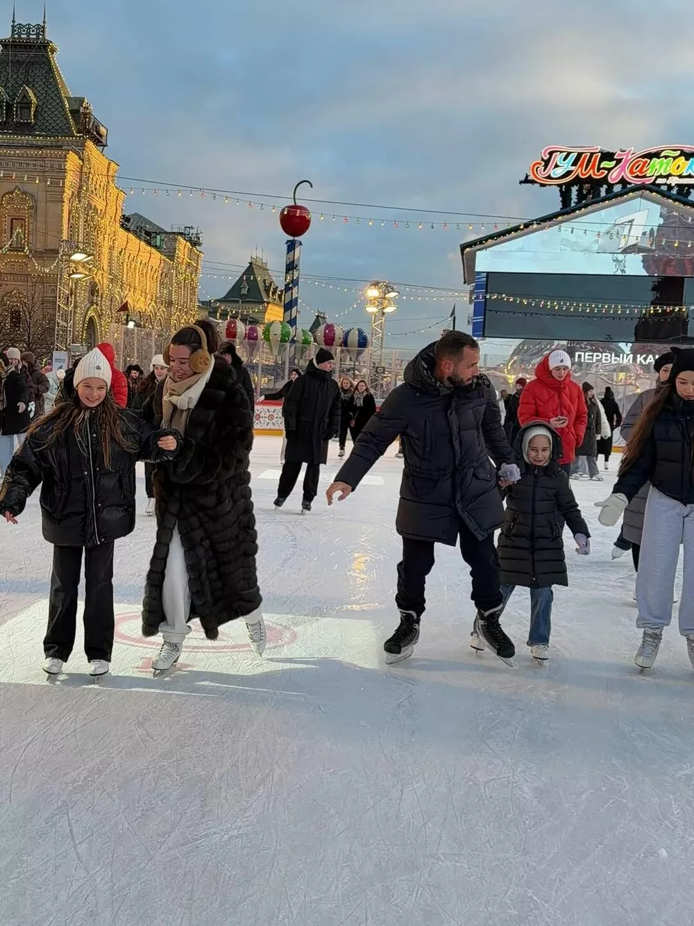 И эти традиции стабильно включают семейный поход на каток на Красной площади в самом сердце Москвы. Действительно, более сказочное место в столице в предновогодний период трудно себе вообразить. В этом году семейство не стало изменять привычкам и вновь выбралось в центр города, чтобы своими глазами увидеть, как городские службы украсили к праздникам окрестности Кремля.