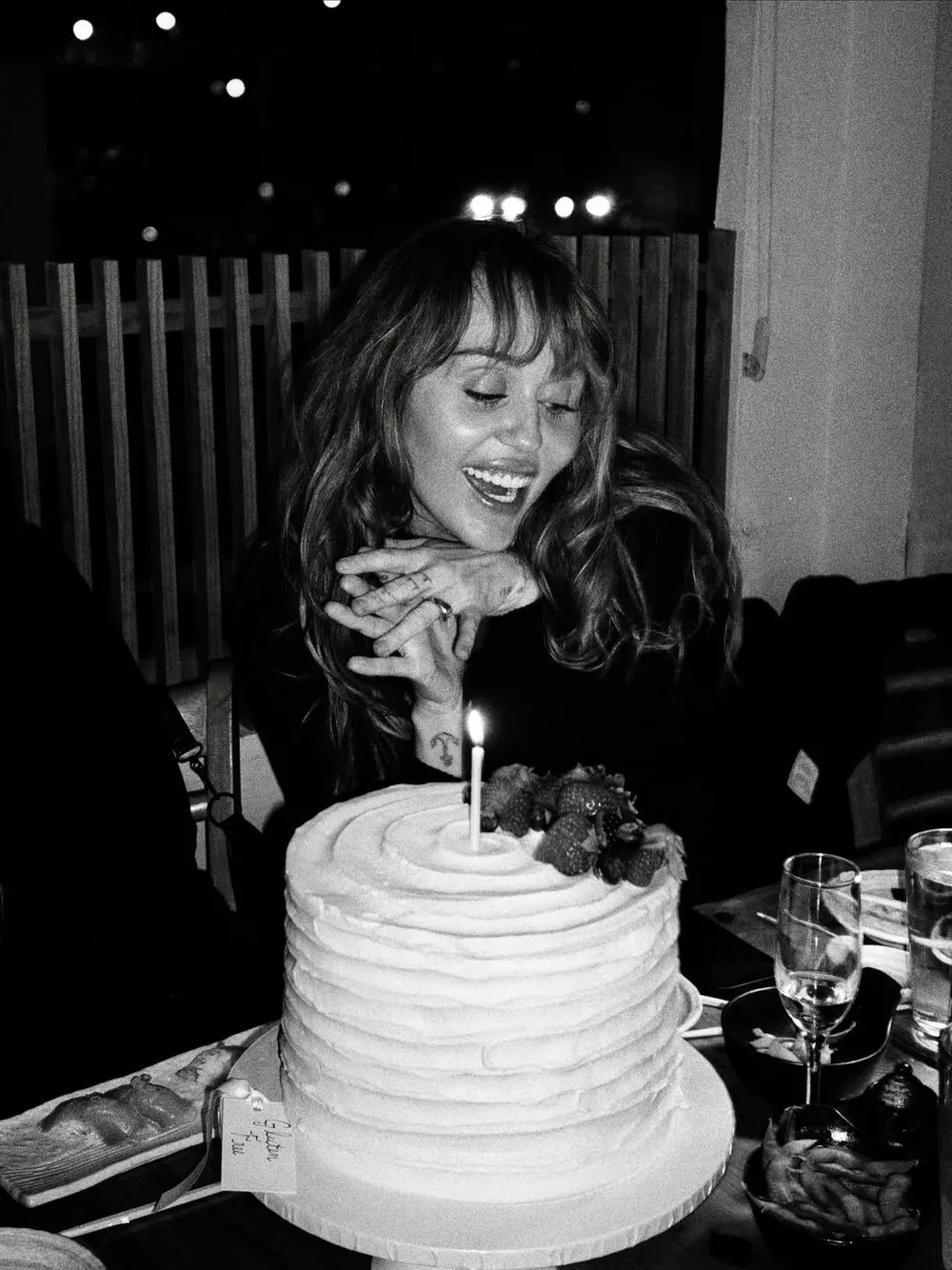 Я знаю, что это желание сбудется. Уже сбылось, — написала Сайрус под черно-белыми снимками, на которых она задувает свечи на торте.