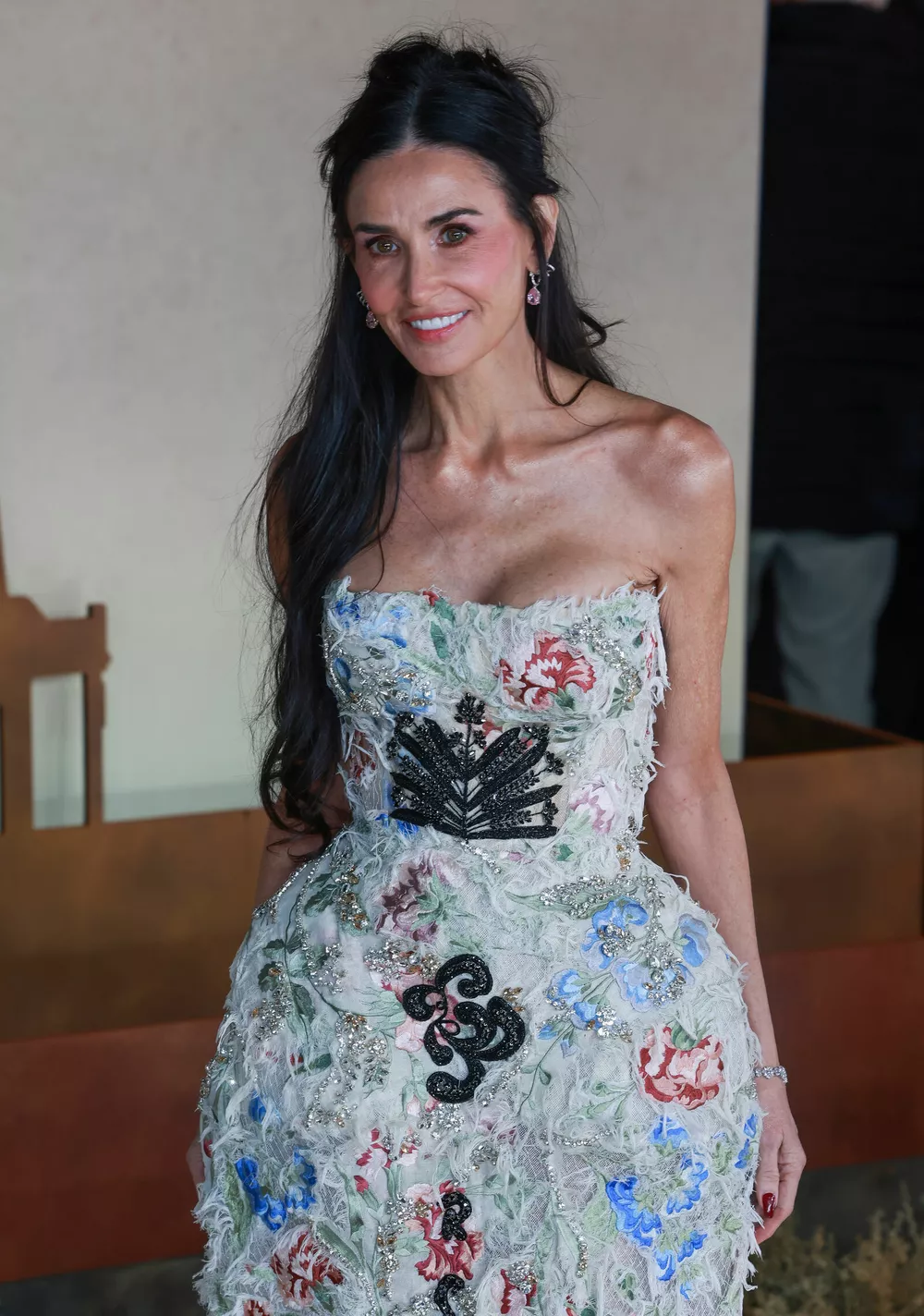 Деми продемонстрировала свои длинные черные локоны, которые частично собрала в небольшой пучок, оставив пару прядей спереди. Поклонники отметили, что Мур выглядит намного моложе своего возраста и похвалили подтянутую фигуру звезды.