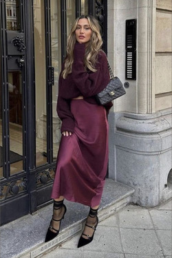 Фиалковый или вишневый может быть использован в качестве отдельного элемента одежды (например, пальто, свитер, юбка) или в аксессуарах (сумка, обувь, шарф).