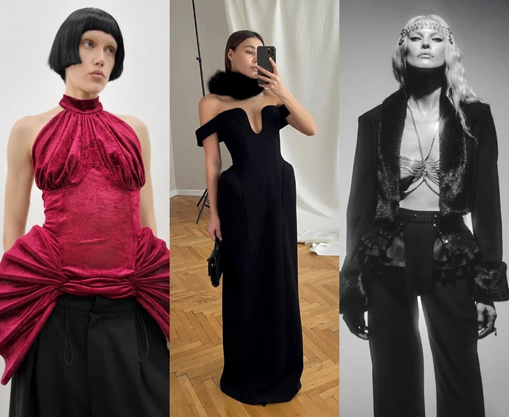 В этом сезоне платья с меховыми деталями заслуживают отдельной категории. Мягкий мех по линии декольте, на рукавах или подоле превращает даже простую форму в вещь с характером и легким привкусом старого голливудского гламура. Не случайно весь сезон мы так активно носили меховые воротники и манжеты — логично перенести этот мотив и в новогодний аутфит. Такие платья требуют минимум стилизации: достаточно сияющего макияжа глаз или губ, чтобы не перегрузить образ (читайте также: Платье с меховой опушкой — новое прочтение Slavic core).