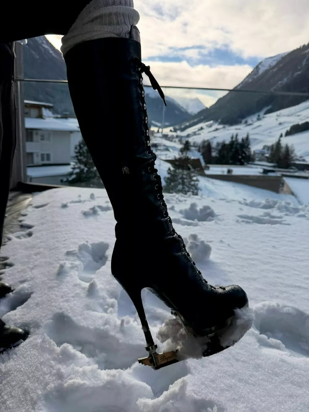 Перед концертом певица позировала на фоне рождественских елок в корсете и прозрачных черных колготках. Наряд она завершила сапогами до колен на высоком каблуке. Певица также надела большие очки с тонированными стеклами и завершила образ меховым полушубком.